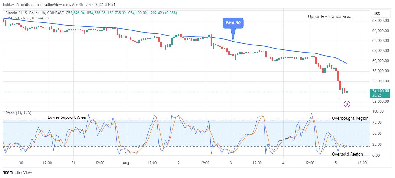 The $54,576.38 price level served as a solid resistance for the coin price as a pullback below the EMA-50 as the 1-hourly session resumes today, suggesting the coin price is set for the next bull rally. Because there is currently a bullish correction in place, the bulls will likely continue climbing.