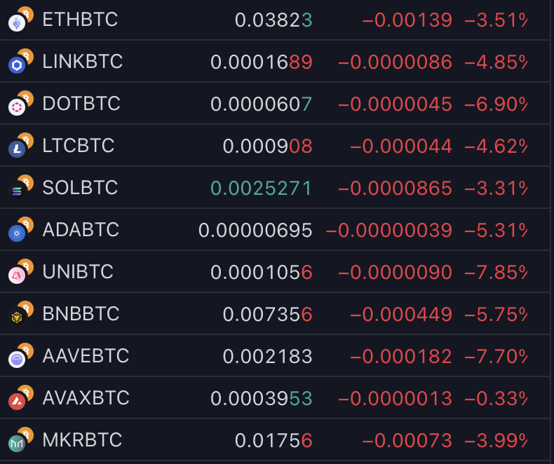 “Still a decent chance that ALT/BTC pairs go to the range lows. They really are not that far away. In fact, in November 2020 they went from the current levels to the range lows in only about a month. With BTC dominance at 60% it can already make sense to diversify as not all alts have to bottom against BTC at the same time.”