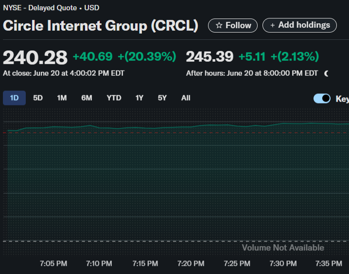 The recent uptick in institutional activity can also be observed in traditional equity markets. Circle (CRCL), the issuer of USDC, and Coinbase (COIN) have seen strong gains. Circle’s stock rose by 20% in the past 24 hours, while Coinbase is up 4.43% for the week, among the top gainers in the sector.