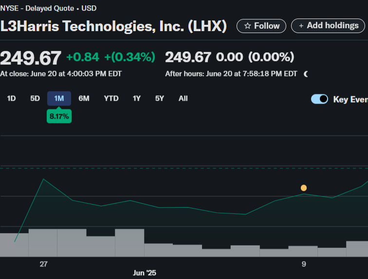 L3Harris shares are up 8% over the past month, closely followed by Raytheon Technologies, which gained 8.66% in the same period. These movements reflect a broader shift of investor capital into defense-related equities amid rising global tensions.