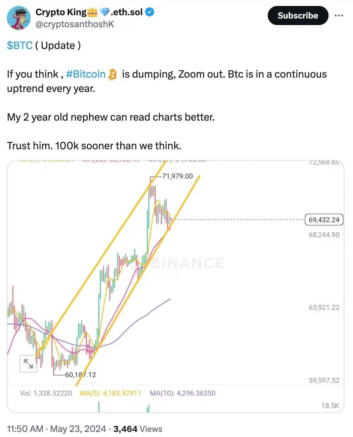 On the 22nd of May, Bitcoin [BTC] dropped below the $70K mark, and Ethereum [ETH], which had recently surged from $3,064 to $3,790, turned red as well.
