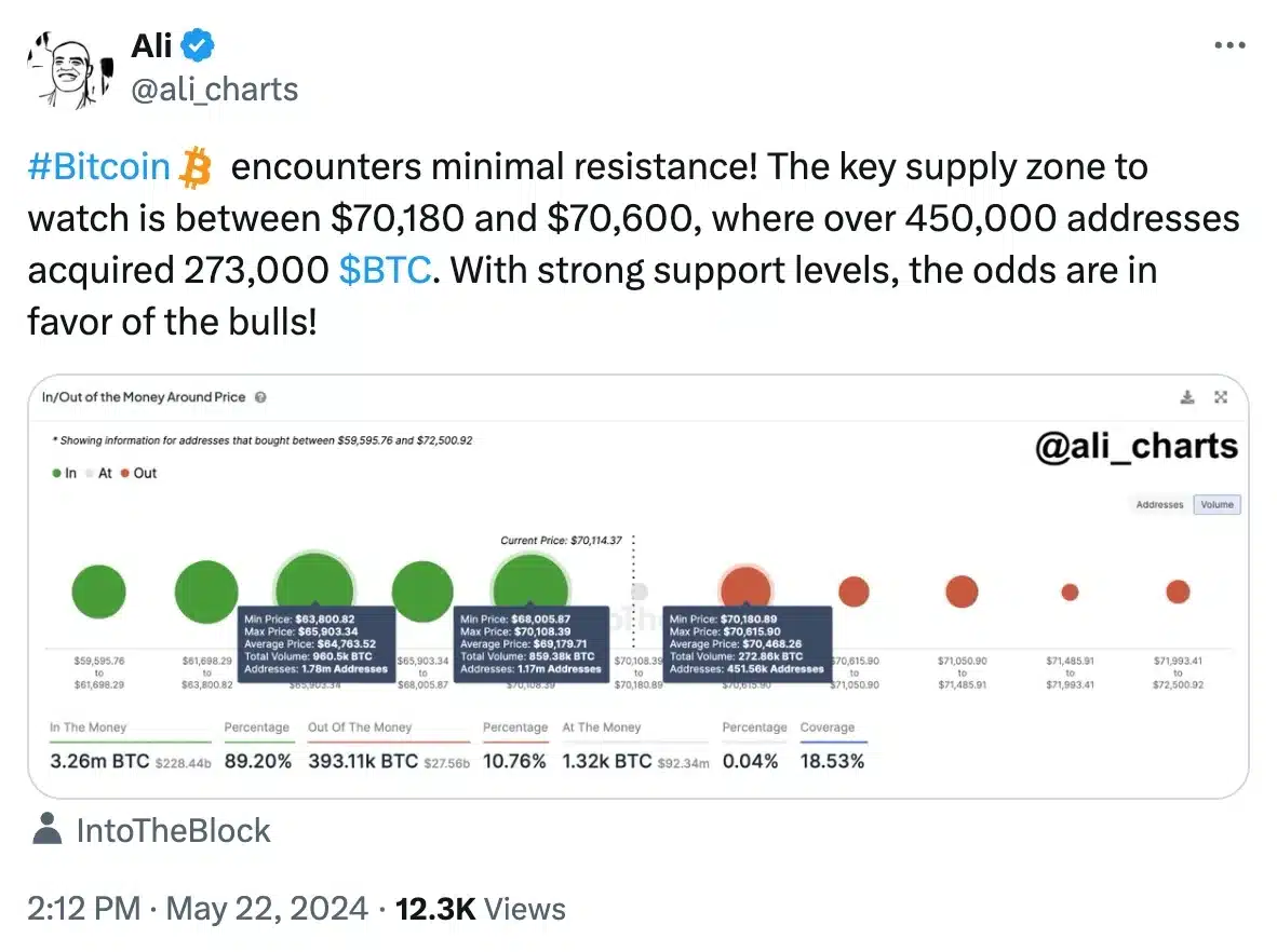 Ali Martinez, the technical and on-chain analyst, echoed a similar sentiment and said,