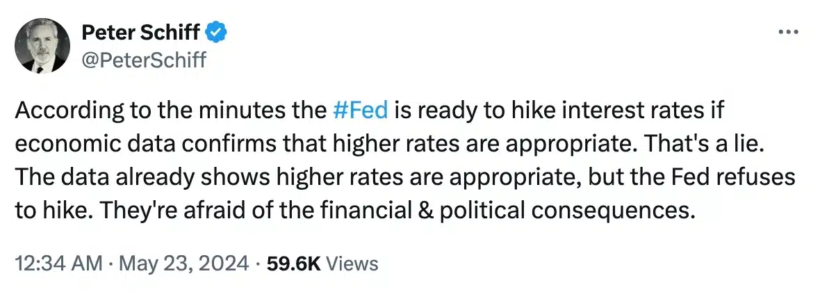 Criticizing the decision, Peter Schiff, CEO and Chief Global Strategist of Euro Pacific Capital, in an X (formerly Twitter) post, noted,