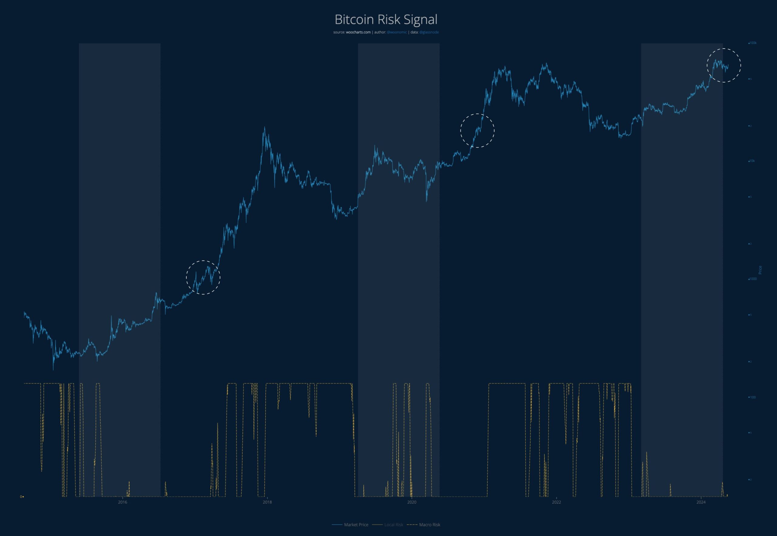 It’s consolidating under all-time highs, during this time, long time frame risk signal is quite low. Risk only starts climbing after the floodgates open.”
