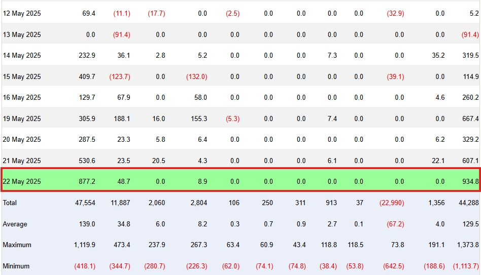 Over the past two weeks, US$3.1 billion (AU$4.8 billion) has entered the ETFs in net inflows, with the most recent trading day seeing net flows of US$934.8 million (AU$1.2 billion) alone.