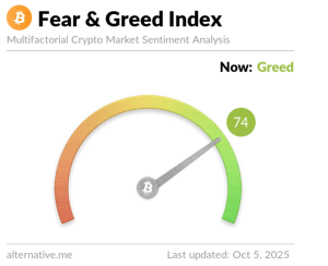 The index, which is a commonly-used tool to gauge sentiment in the market, currently stands at a “Greed” score of 74. Just a week ago, the index showed “Fear” in the market with a reading of 37.