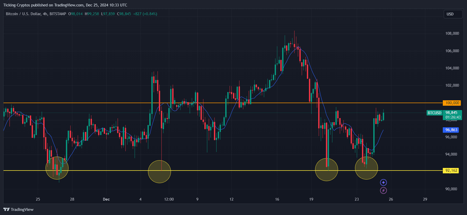 Nach Wochen des Aufwärtstrends testete Bitcoin die Unterstützung bei 92.000 $ und erholte sich schnell auf 99.100 $. Doch die Widerstandsmarke bei 104.000 $ bleibt unerreicht. Mehrere Versuche, diese Hürde zu überwinden, sind gescheitert und sorgen für Unsicherheit bei Tradern.