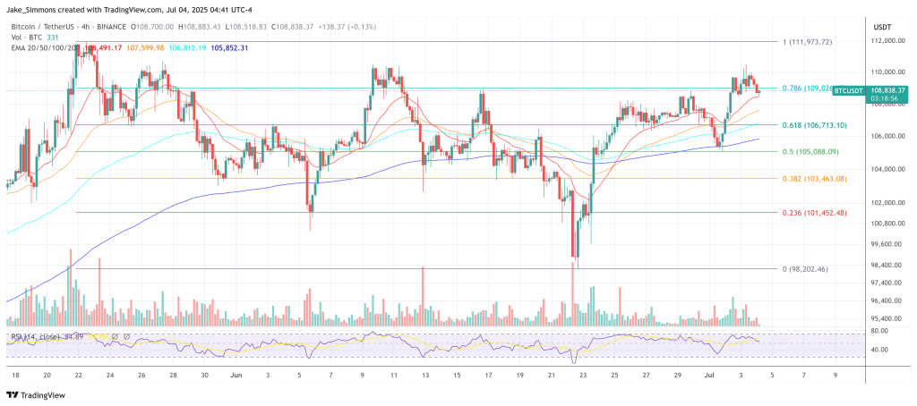 At press time, BTC traded at $108,838.