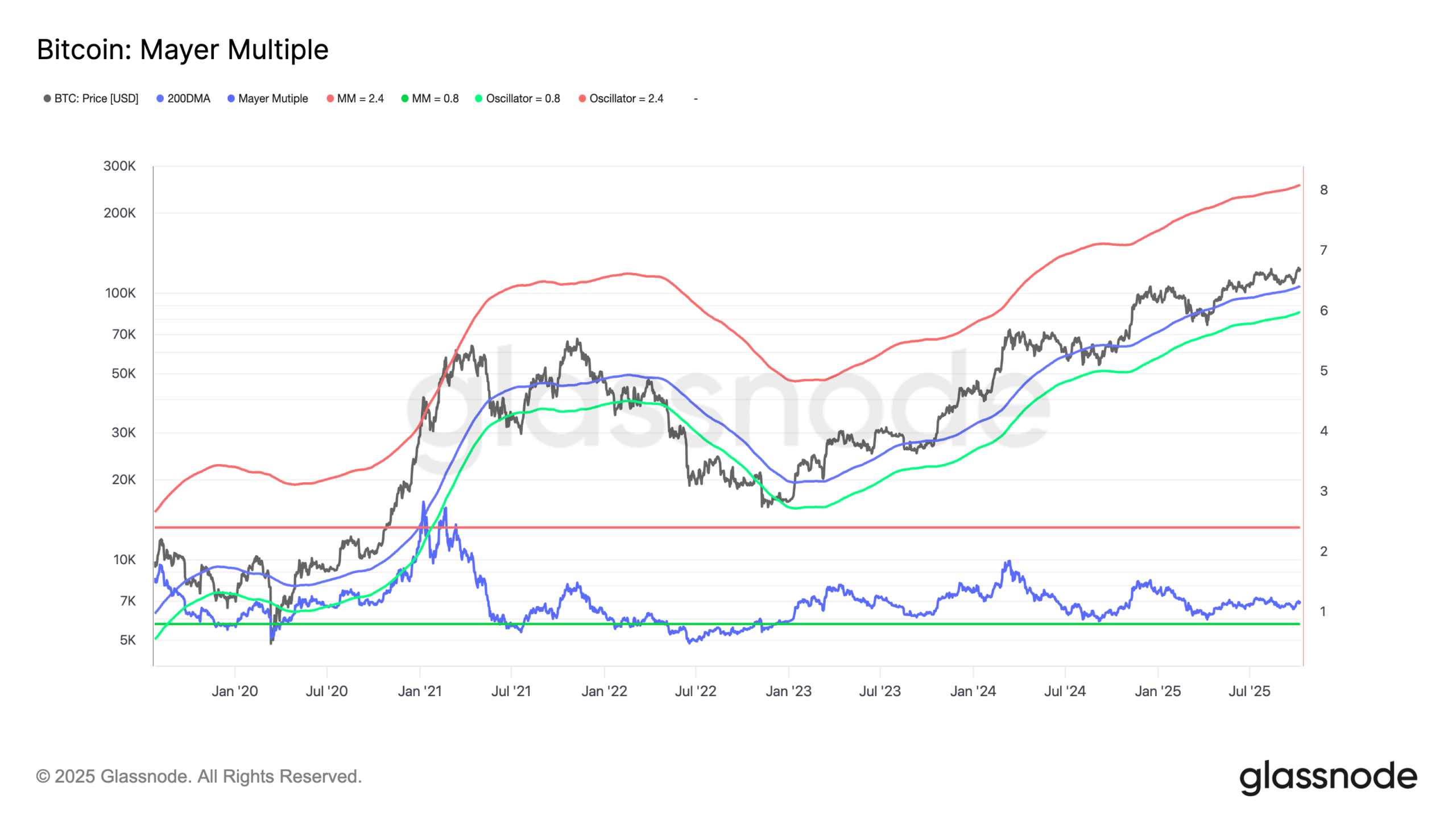 The latest readings from the Mayer Multiple reveal that even at $120,000, BTC/USD is far from overheated.