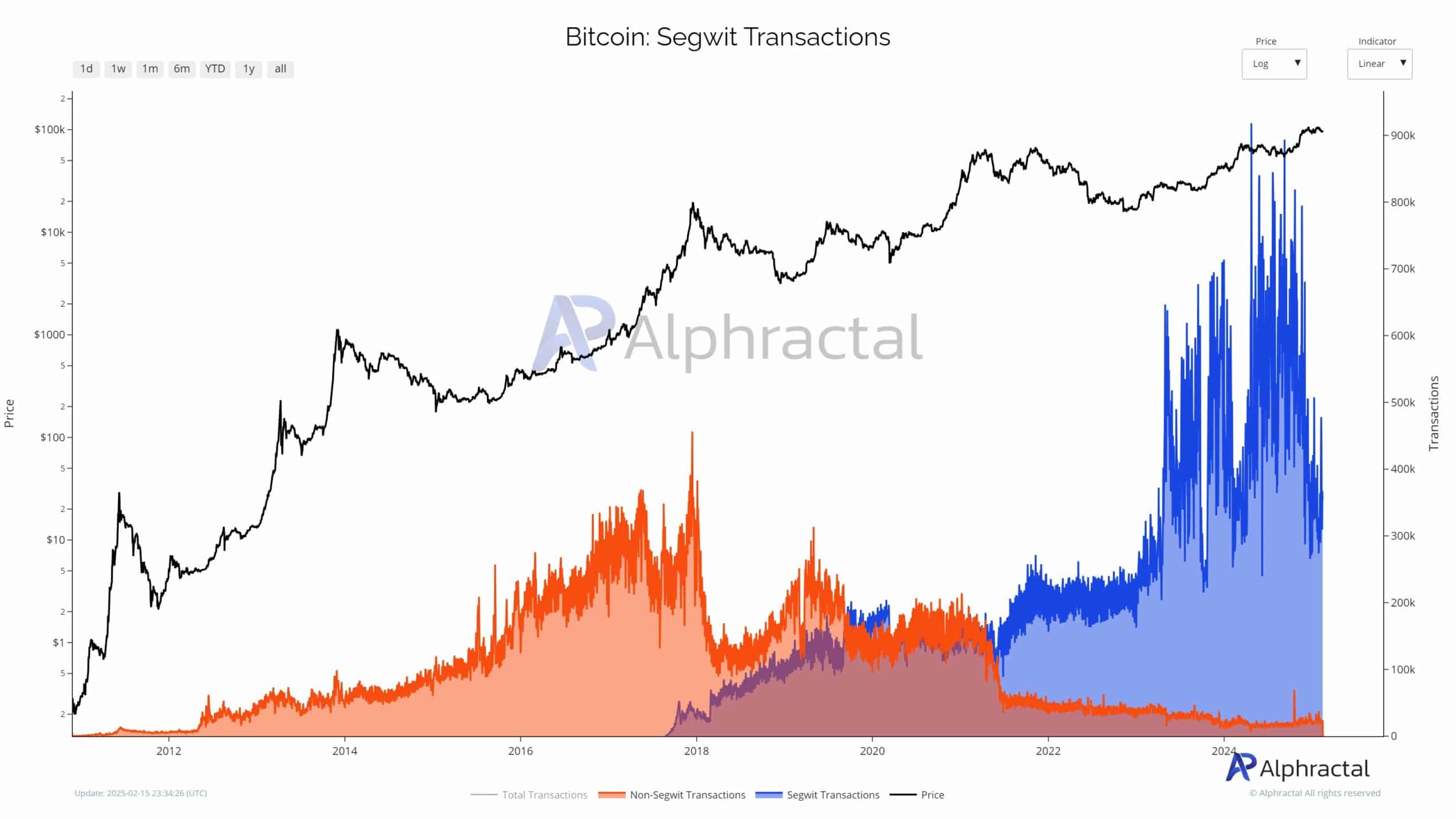 Moreover, SegWit transactions, which were once the dominant and efficient transaction type, are now in decline.