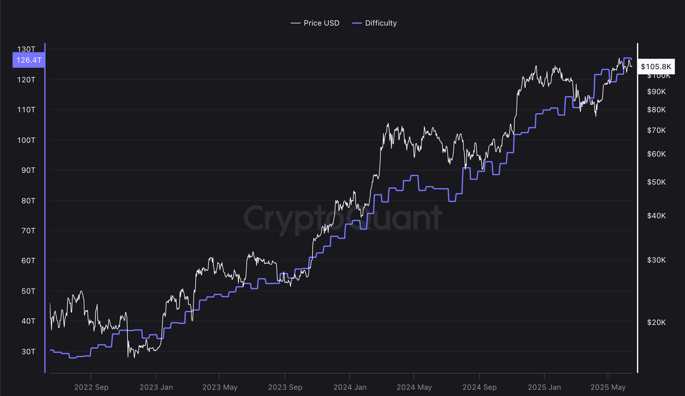 Bitcoin’s [BTC] mining difficulty dipped slightly to 126.4 trillion, after notching an all-time high of 126.9T on the 31st of May.