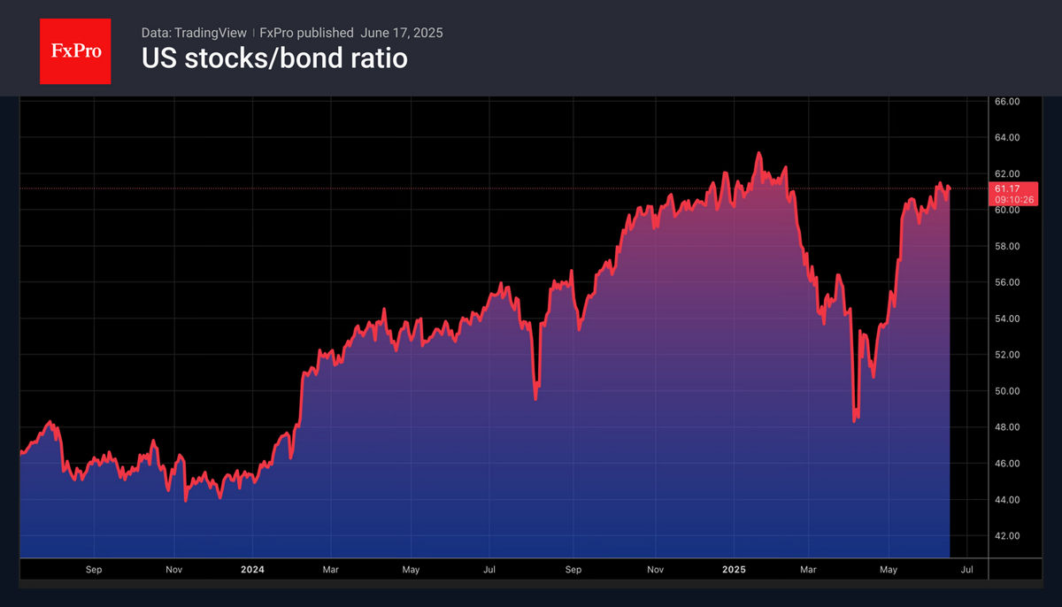 Bitcoin has failed to capitalise on the latest rise in risk appetite in financial markets. The ratio of US stocks to US Treasury bonds has reached its highest level since Donald Trump’s inauguration. The S&P 500 rose on reports that Iran is seeking ways to resume nuclear talks with the United States. Investors believe that the worst of the conflict in the Middle East is behind us and will end soon.