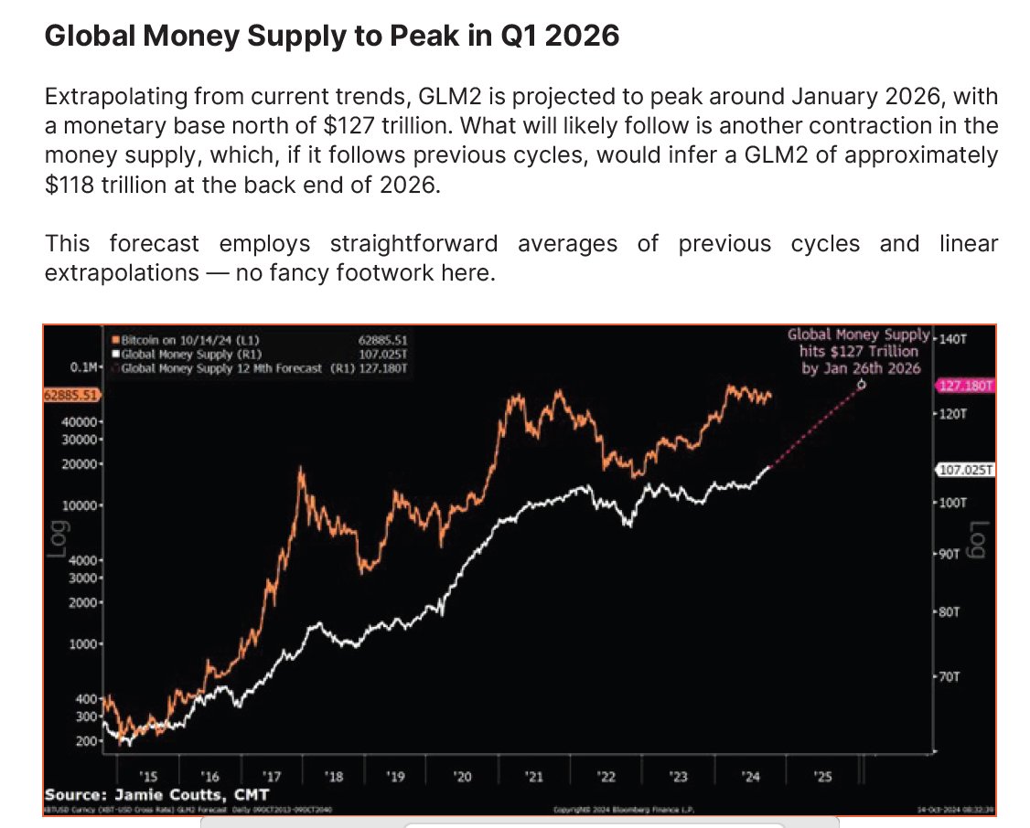 Coutts further predicts that the global M2 money supply will peak on January 26, 2026, as economic policies continue to expand monetary bases.