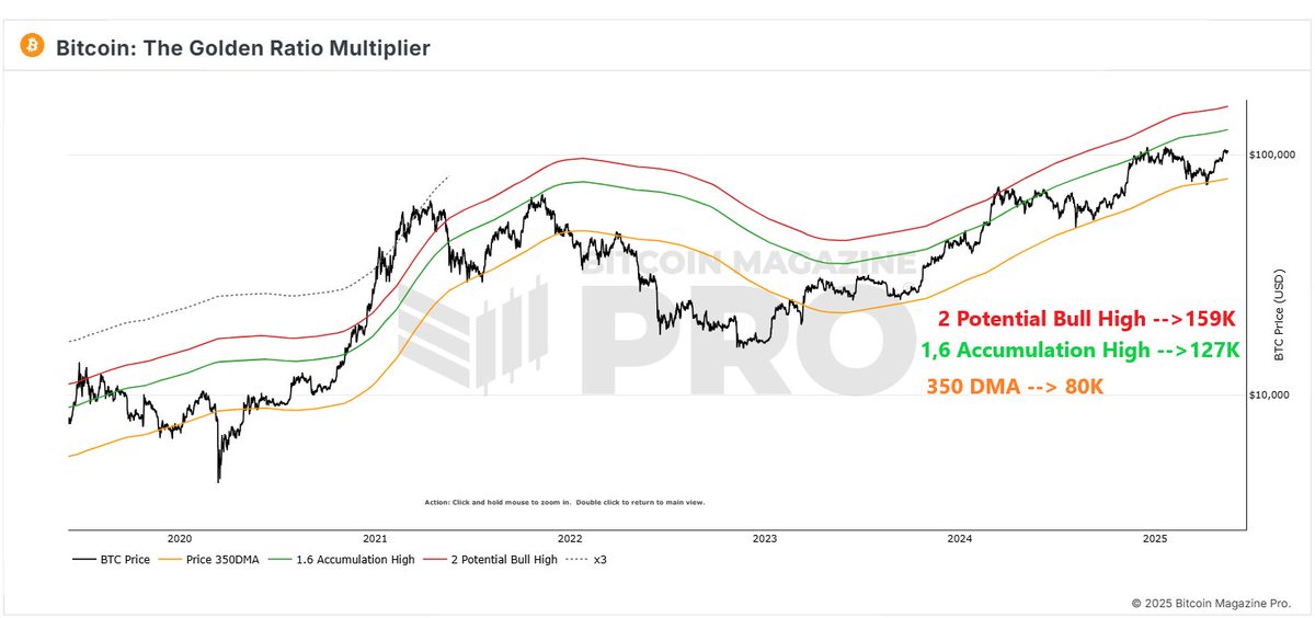 Furthermore, Kesmeci pinpointed the most important support level to watch for the Bitcoin price in the remaining days of the year’s second quarter. Based on the Golden Multiplier Ratio, this cushion lies at $80,000 around the 350-day moving average, where long-term accumulation typically occurs. A fall beneath this support could invalidate the bullish theory currently being held for the price of BTC.