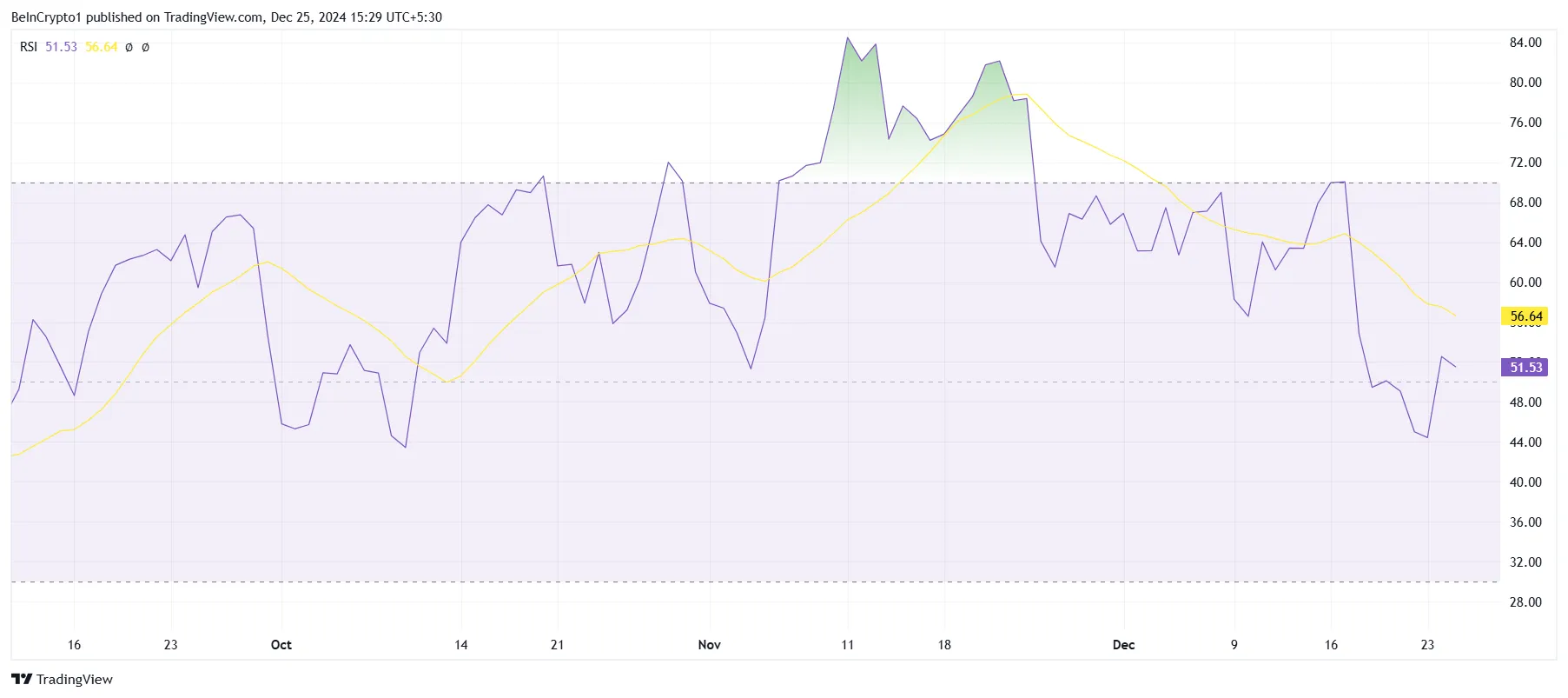 Bitcoin’s macro momentum also reflects bearish tendencies. The Relative Strength Index (RSI) has dipped lower, struggling to stay above the neutral 50.0 mark. This technical indicator’s weakening performance highlights a loss of bullish strength in recent trading sessions.