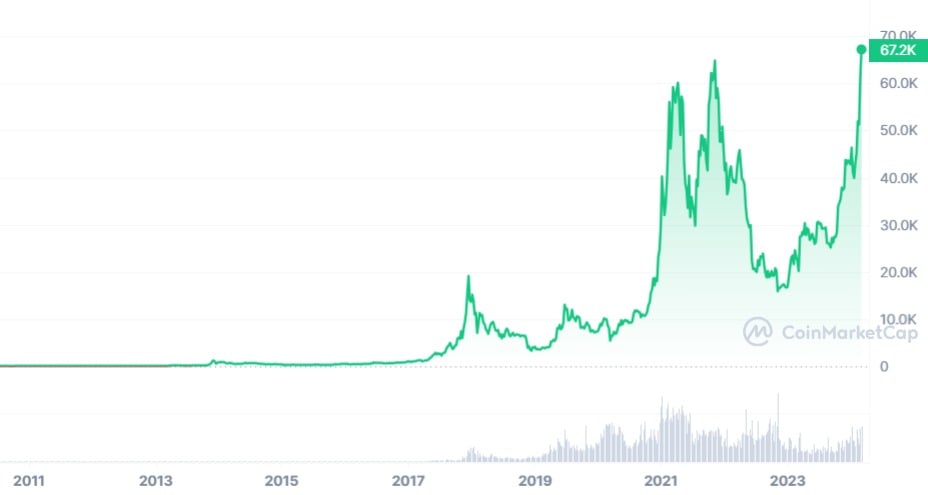 At the time of writing, Bitcoin (BTC) is trading at $66,429, with a market capitalisation of around $1.3 trillion. Bitcoin made a remarkable resurgence since its lows in 2022 and is a popular option for crypto investors. It continues to exert a significant impact on the overall crypto market, influenced by factors such as technological developments, adoption rates, BTC-related news, and the state of the global economy.