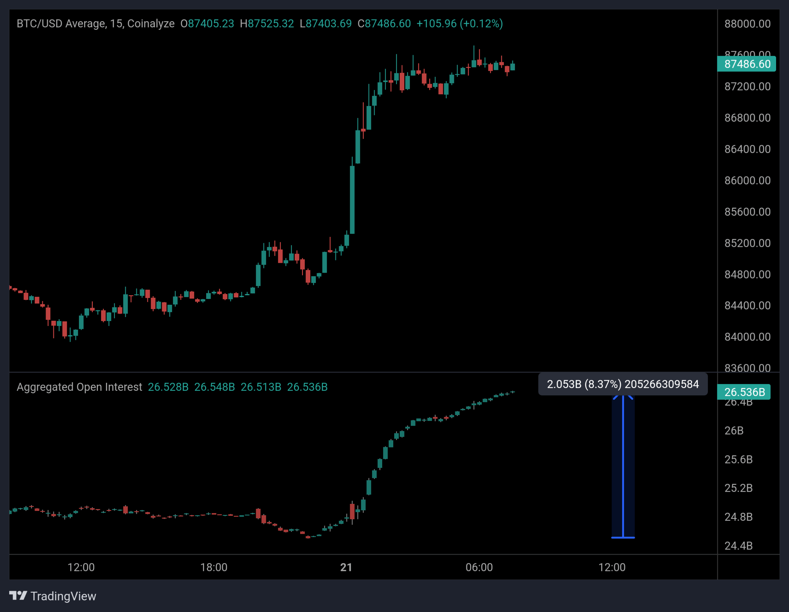 Bitcoin Reclaims $87,500, But Watch Out For 8% Open Interest Spike