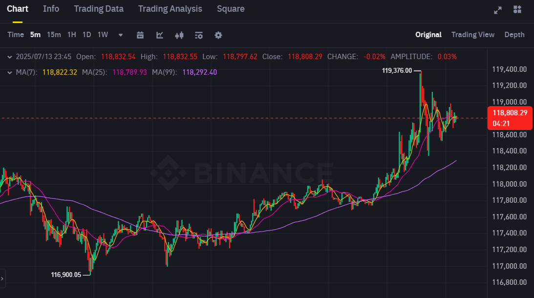 Bitcoin advanced to a new record high of $119,300 on Sunday as bullish sentiment mounted ahead of a potentially game-changing week for the crypto industry.