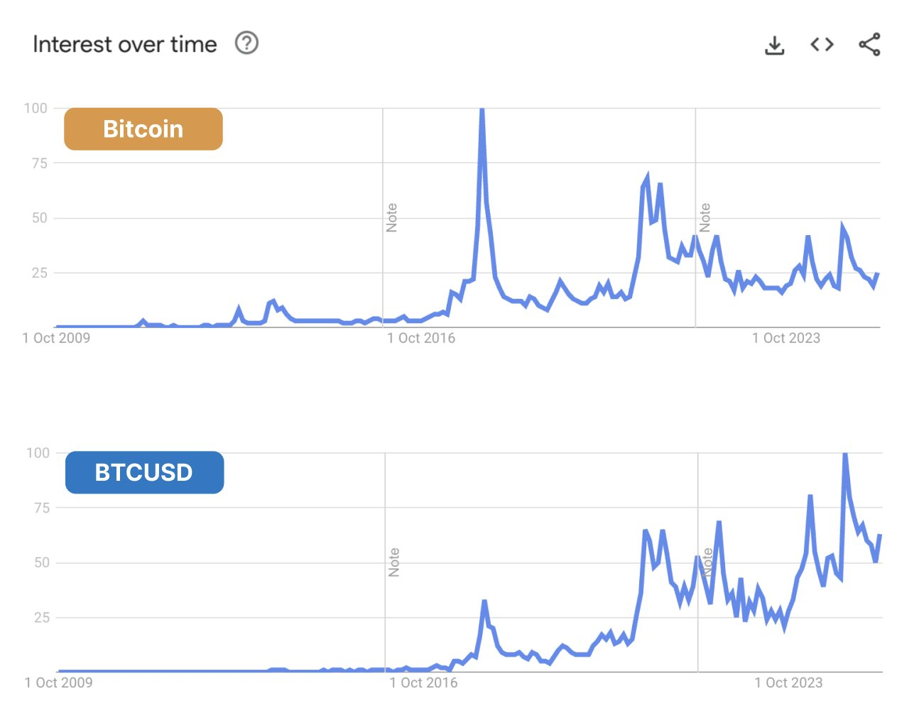 “Since circa 2019 people already know what Bitcoin is, they don’t need to search for it.