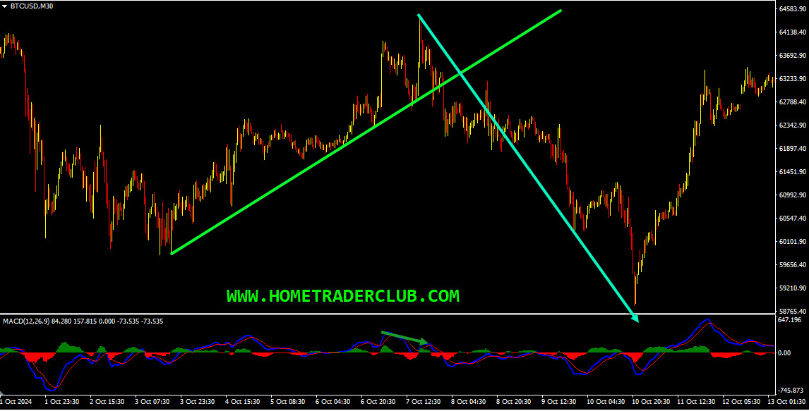 On the M30 chart, the market provided us with various facts supporting the bearish view. The price, which was moving higher, created a bearish divergence between the first high, formed at 63970.56 and the second high formed at 64447.16 based on the MACD indicator. The price then moved lower and broke below the most recent uptrend line. We may consider these as facts provided by the market supporting the bearish view, and also there were no signs opposing this bearish view. Then as you can see in the image below, how the price moved lower further after that and provided a nice move to the downside!