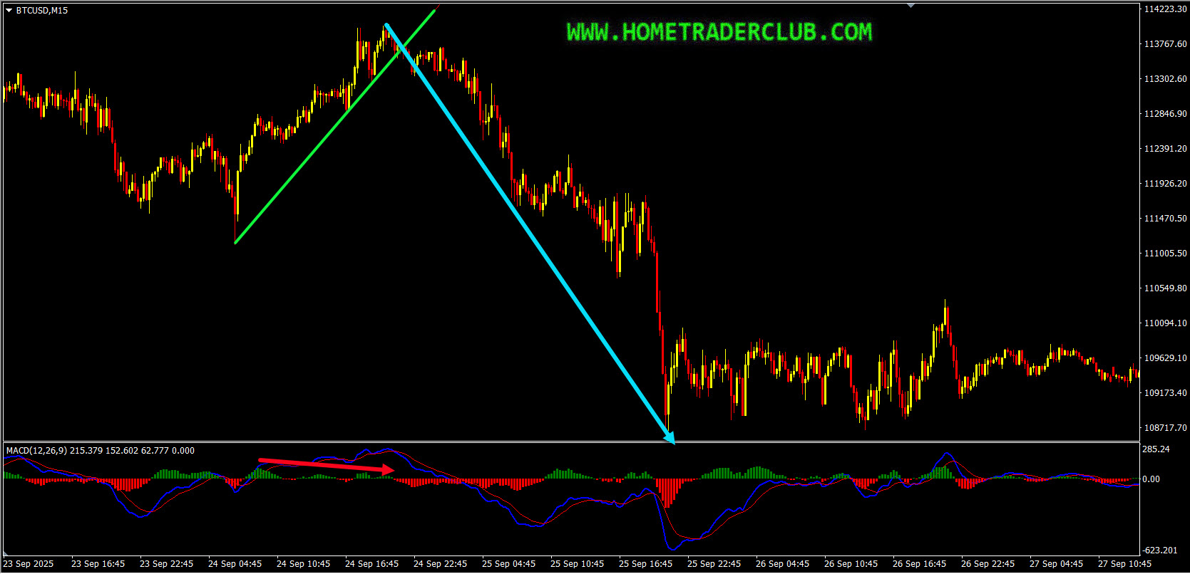 On the M15 chart, the market provided us with various facts supporting the bearish view. The price which was moving higher created a bearish divergence between the first high that has formed at 112839.48 and the second high that has formed at 114017.01 based on the MACD indicator, which we may consider as evidence of bearish pressure. The price then moved lower and broke below the most recent uptrend line. We may consider these as facts provided by the market supporting the bearish view and also there we no signs opposing this bearish view. Then as you can see in the image below how the price moved lower further and provided a nice move to the downside.
