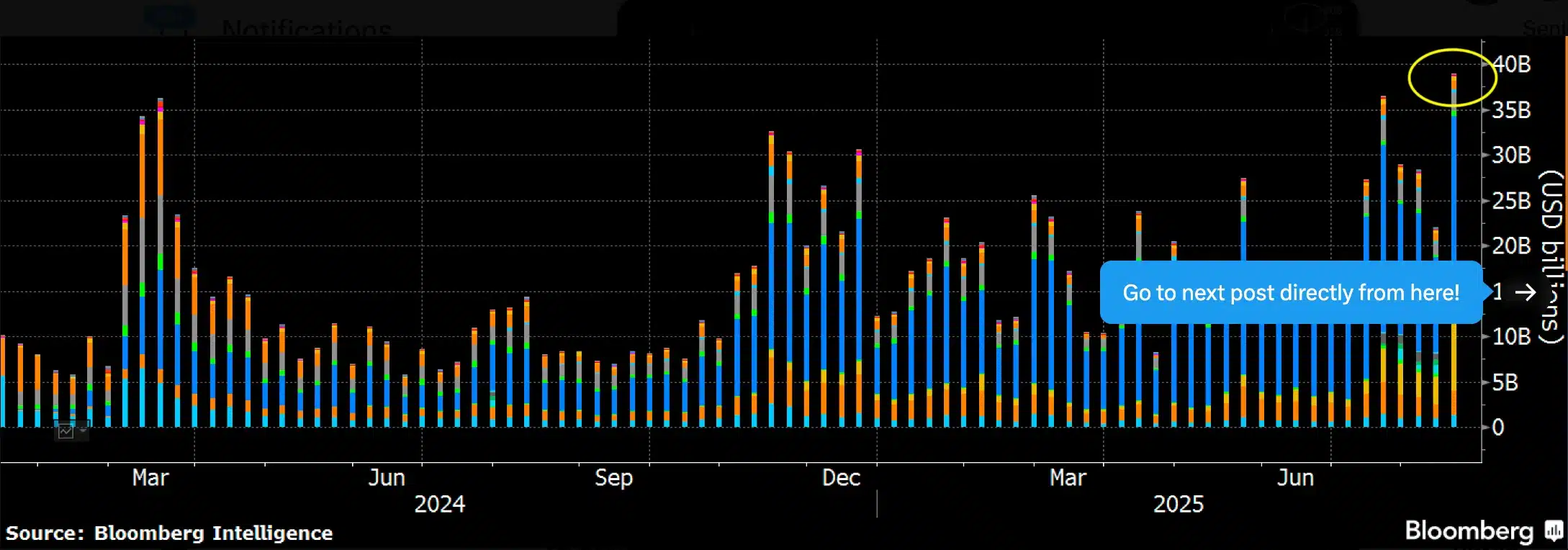 U.S.-listed spot Bitcoin and ETH ETFs hit record trading volumes, with Ether funds surging to new highs. The milestone coincides with BTC’s $124K peak and ETH’s rally near all-time highs.