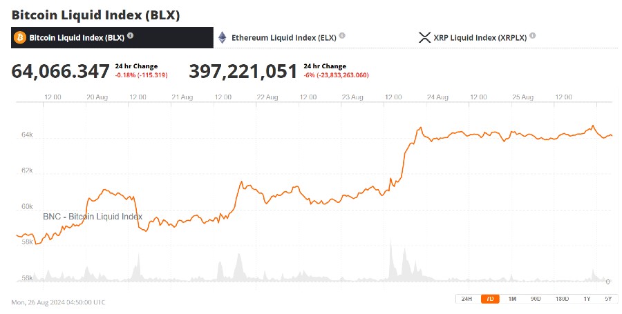 Positive US economic news has moved the Bitcoin price steadily upward over the last week. Source: BNC Bitcoin Liquid Index