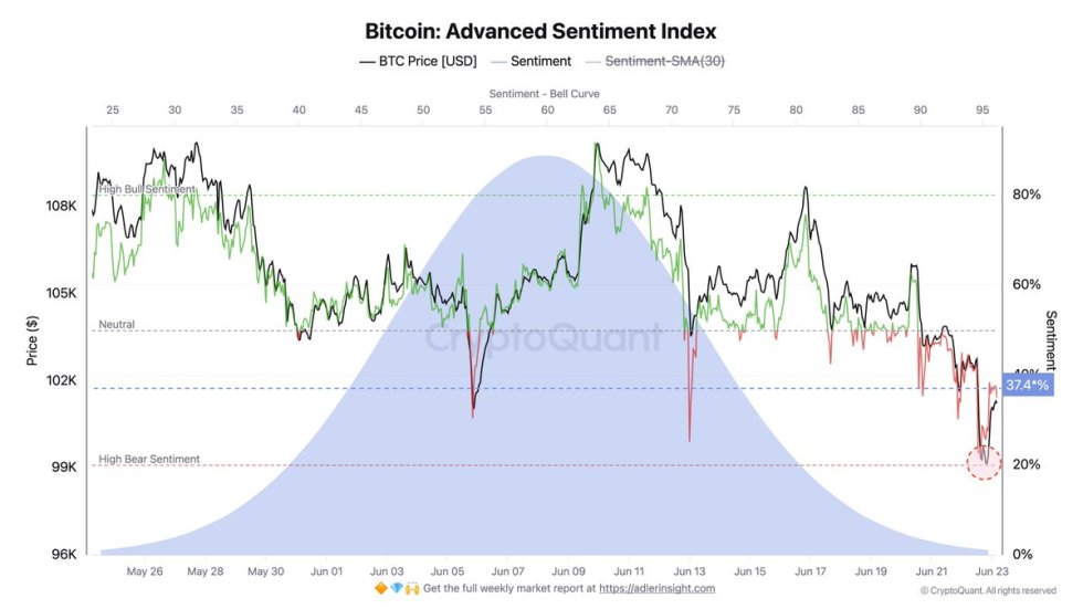 Adler notes that this partial rebound in sentiment and softening of the negative volume delta reflect growing interest in catching potential upside, but the market remains on edge. As long as Bitcoin holds above $100K, a fast recovery remains possible. However, any escalation in global conflict or further macroeconomic deterioration could undermine confidence and lead to a deeper correction. The next few days will likely determine whether Bitcoin resumes its uptrend or gives in to broader market pressure.
