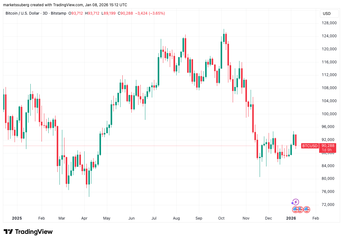 After nearly reaching $95,000, BTC/USD is back near its yearly open, per data from TradingView, threatening to give up $90,000 on intraday timeframes.