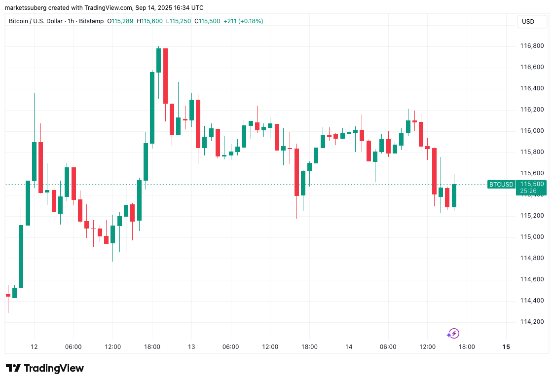 Bitcoin drifts toward $115,000 into the weekly close ahead of a key macro week.