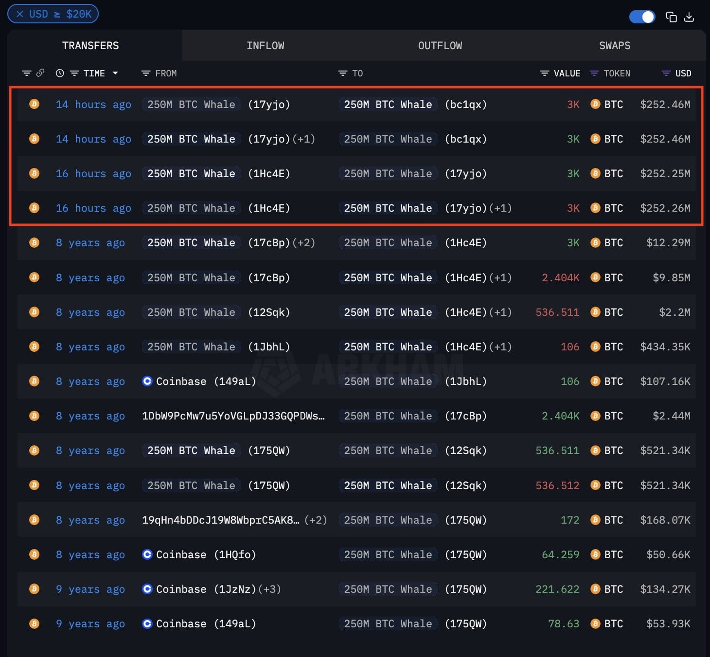 Bitcoin Whale Awakens After 8 Years, Moves $250 Million in BTC