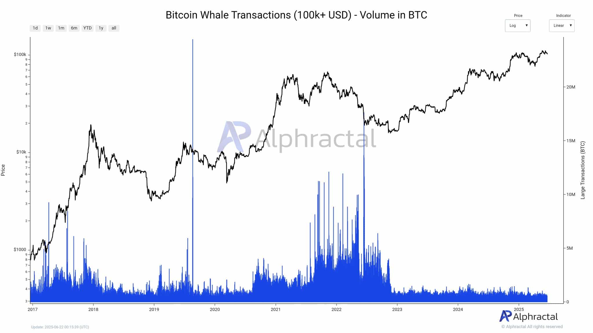 On-chain data revealed that transaction volumes exceeding $100,000 have been stuck in neutral territory, mimcking the same subdued activity last seen in 2020.