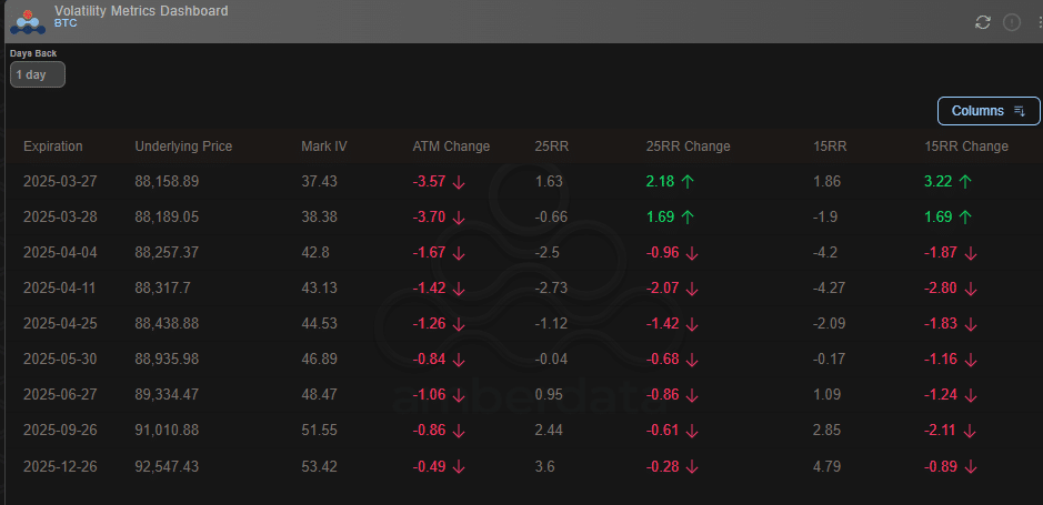 Additionally, the early April expiry had a 25RR of -2.5 and -2.73, further reinforcing traders’ caution in the first half of next month.