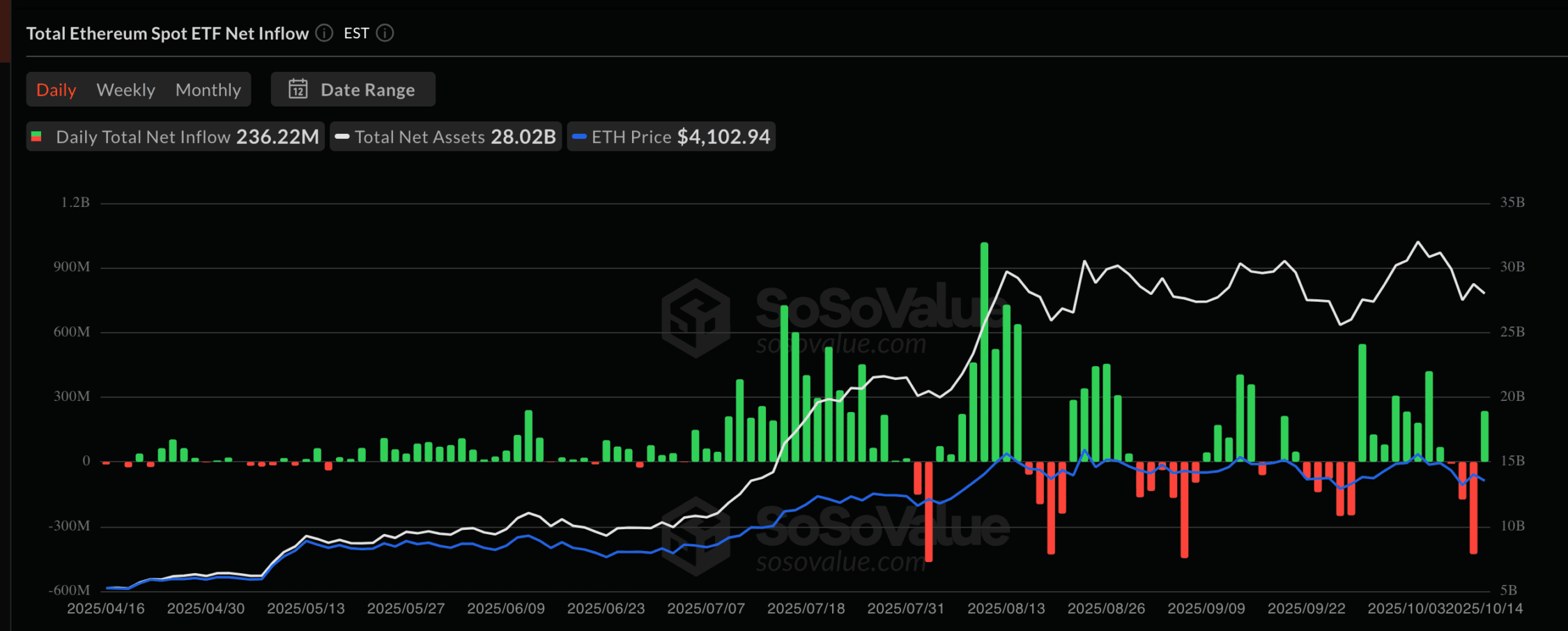 In line with Bitwise CIO optimism, crypto markets showed strong signs of recovery. According to SoSoValue data, on October 14, spot Bitcoin and Ethereum ETFs recorded net inflows of $338 million.