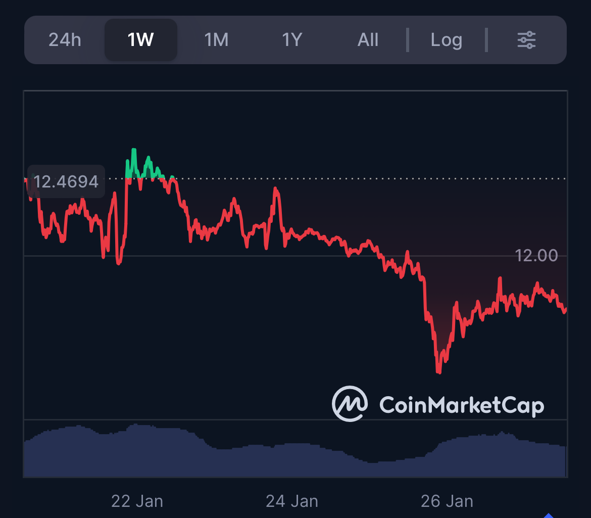 AVAX has seen a notable decline over the past week, slipping from $12.51 on January 21 to $11.67 by January 27, showing a 6% drop in price as markets reacted to broader sentiment and the timing of VanEck’s newly launched spot ETF.