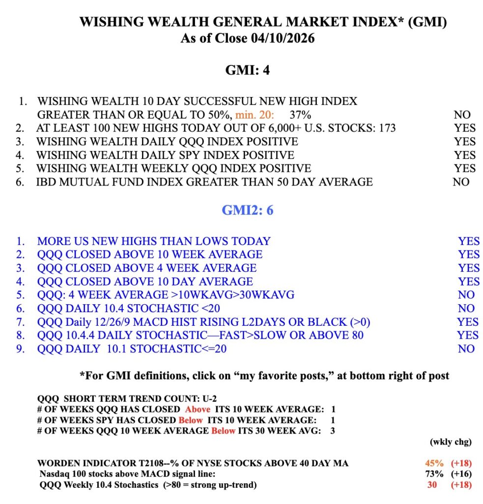 Blog post: Day 2 of $QQQ short term up-trend; GMI turns GREEN; QQQ must hold its 30 week average @607.12; Get the link to my free virtual presentation at the MoneyShow 2026 on April 22.