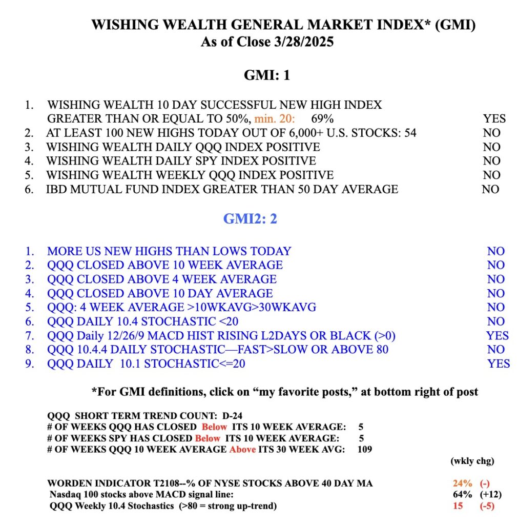 The fact that the GMI has been Red since February 24, is another reason for me to be defensive. It is so much easier for me to make money trading long in stocks when the GMI is 5 or 6 and Green. Best of luck, my readers.
