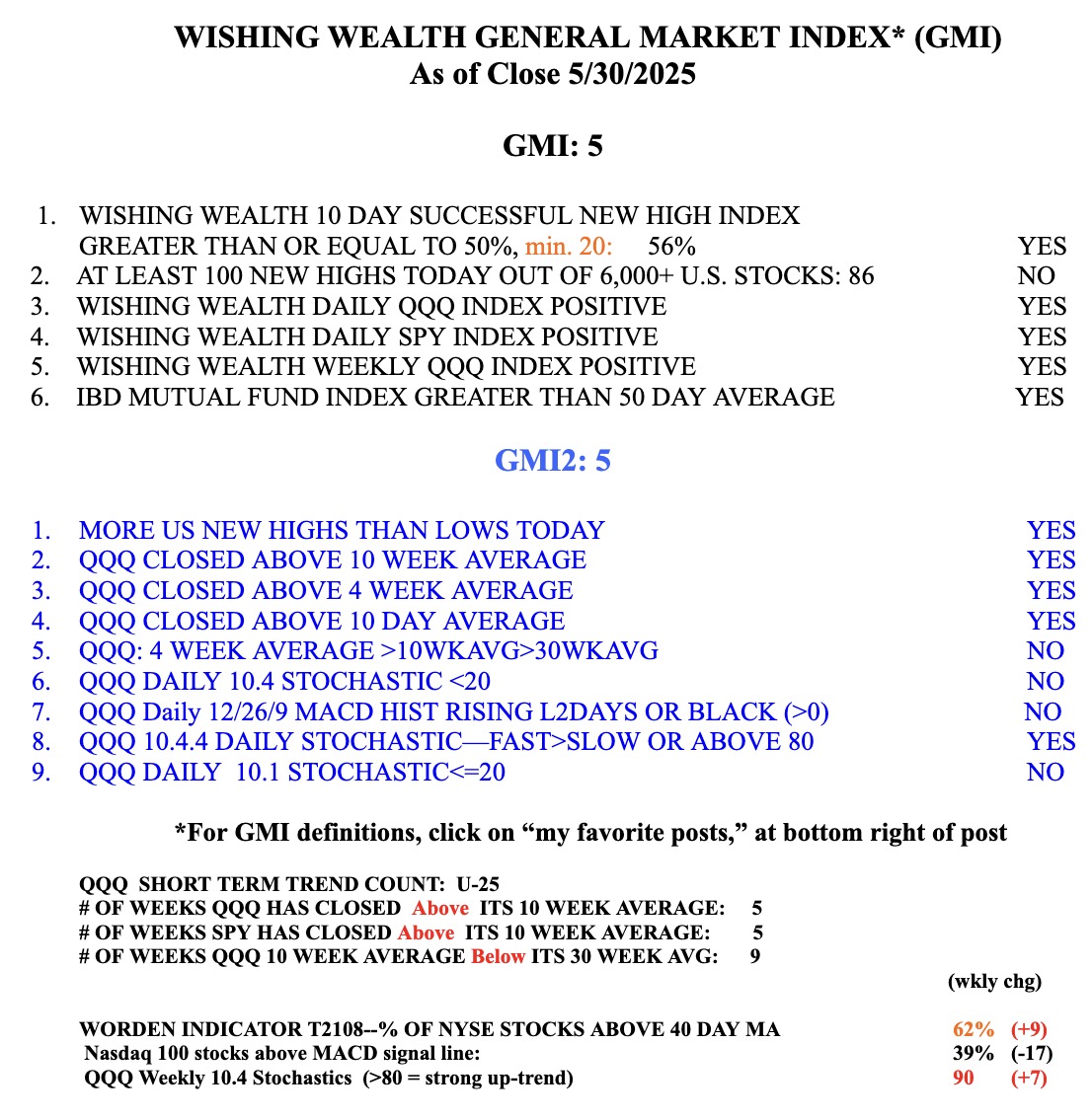 The GMi remains Green at 5 (of 6). So far the up-trend is holding.