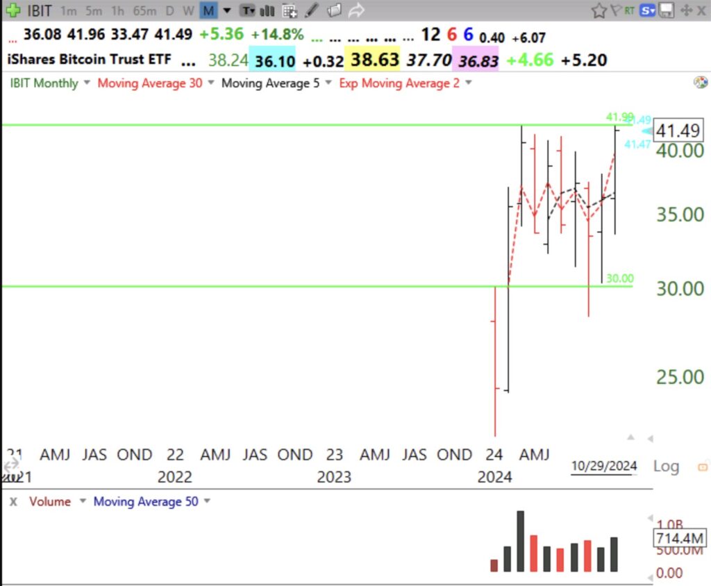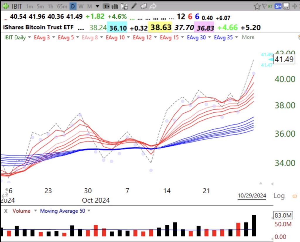 Blog Post: Day 34 of $QQQ short term up-trend; Why are gold, $GLD, and $IBIT in daily RWB up-trends? See daily charts. $IBIT is approaching a GLB and flag.