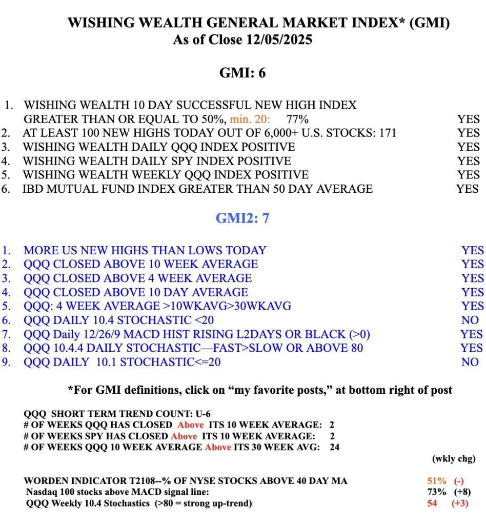 Blog Post: Day 6 of $QQQ short term up-trend; GMI=6 (of 6) and GREEN; See weekly 10:30 chart. Up-trend is intact, see my analysis.