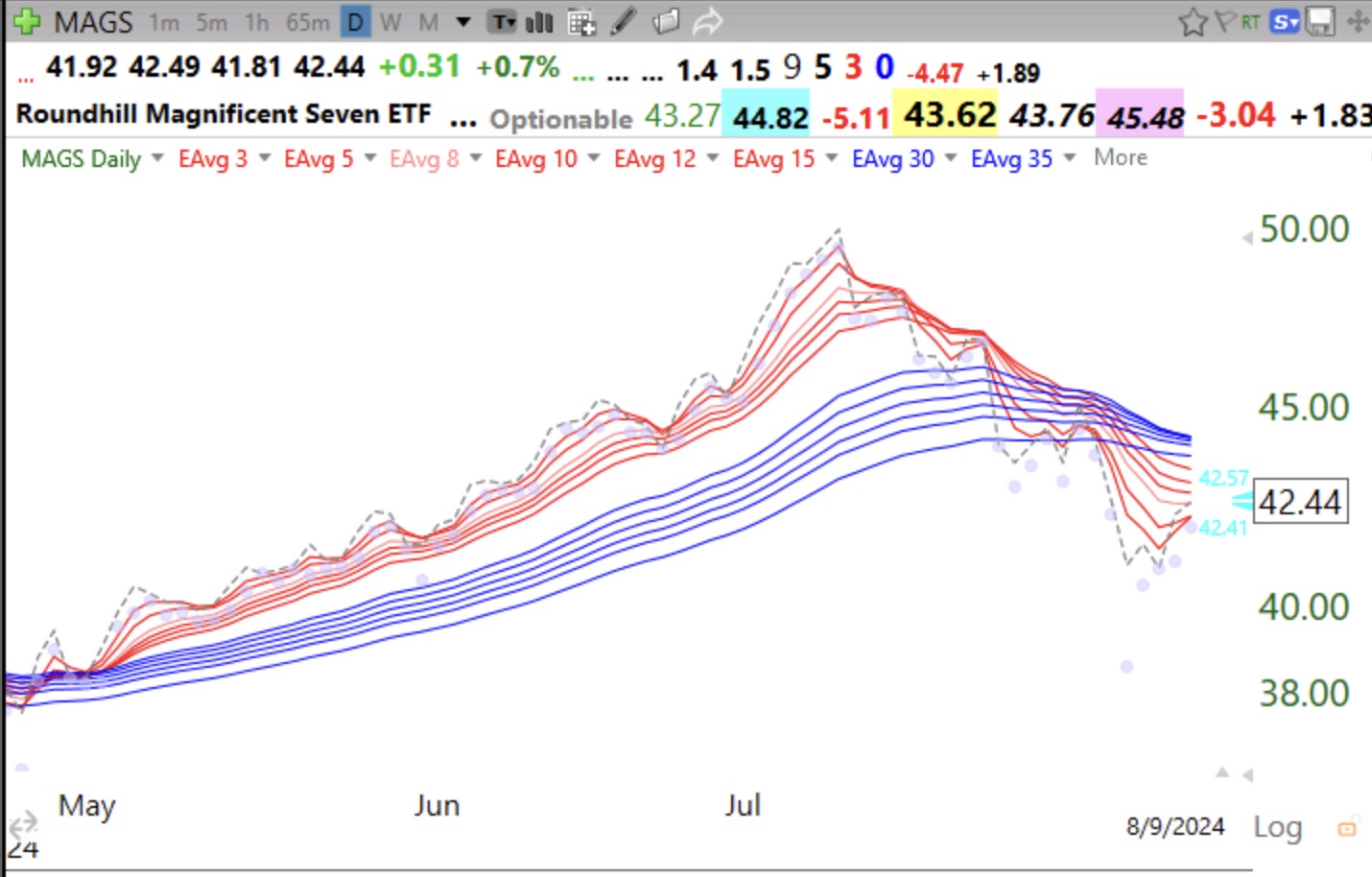 Even the Magnificent 7 ETF is entering a daily BWR down-trend. Ride it in a RWB up-trend! Look at NVDA.