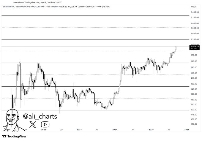 BNB is drawing investor focus after shattering the psychological price of $1,000 milestone.