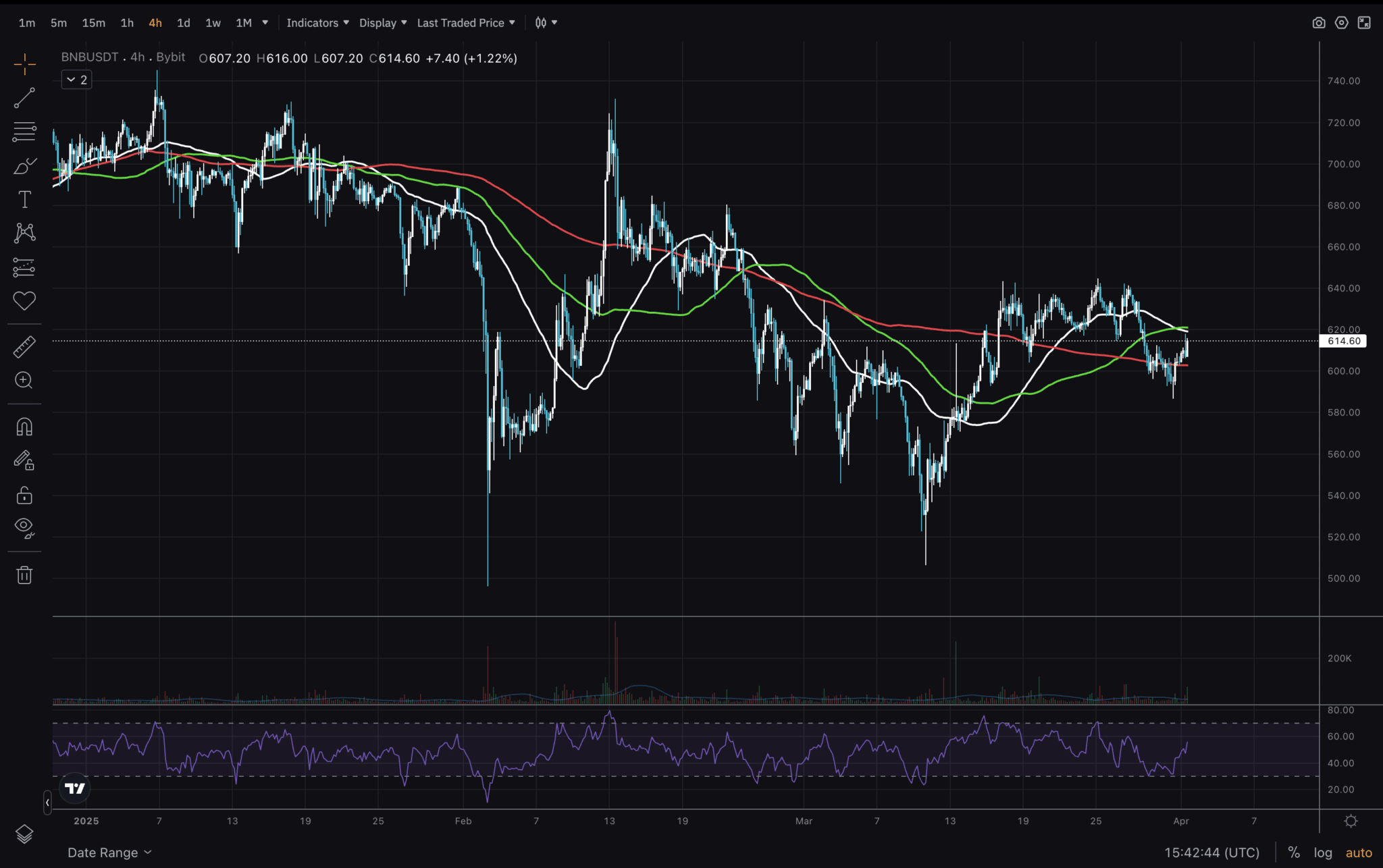 Lastly, we will look at 4H chart. The main thing I’d like to point out here is how BNB price has acted around the moving averages locally ahead of Trump tariff day.
