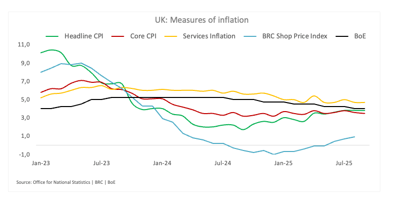 Fresh data from the Office for National Statistics showed headline CPI inflation rising to 3.8% in September, while core inflation (excluding food and energy) eased slightly to 3.5%. Services inflation, often watched closely by the BoE, stayed stubborn at 4.7%, suggesting that underlying price pressures haven’t fully cooled.