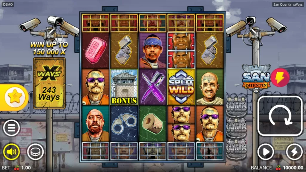 San Quentin’s Bonus Buy feature provides direct access to the Psycho Manhunt bonus with an RTP up to 96.95%. The max win is up to 150,000x your bet.