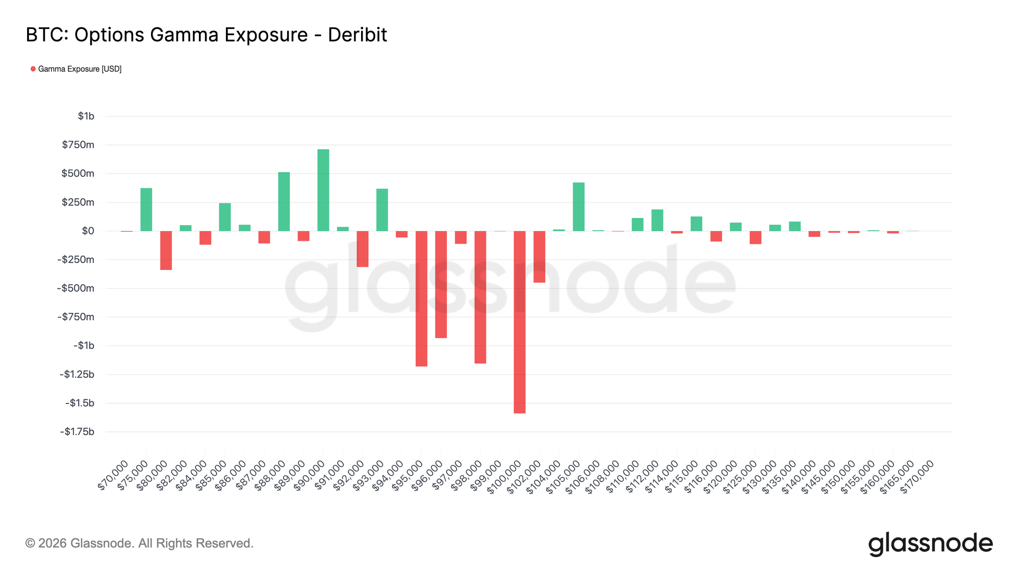 With spot trading around the 95–96K area at the time of writing, price has moved into a short gamma zone that extends roughly from 94K to 104K. Within this range, sustained price action supported by volume is more likely to trigger directional hedging flows, increasing the potential for faster movement toward nearby high-interest strikes, including the 100K level.