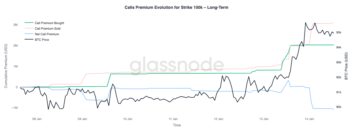 A closer look at the premium behavior of the 100K call strike highlights a clear divergence across maturities. This level remains the next major psychological threshold, and option flows show how the market is positioning around it.