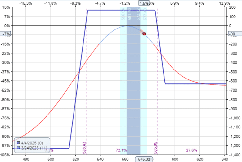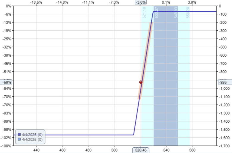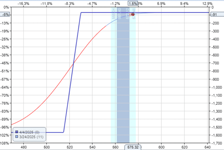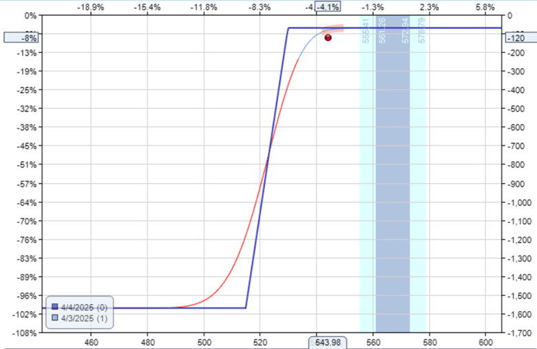 About one day before expiration, on the afternoon of April 3, the position still looks fine and has not yet reached the stop loss for the put spread.