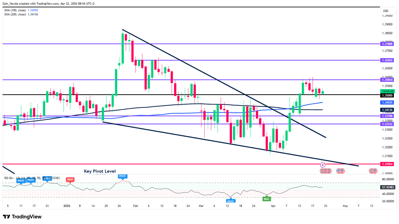 The 1.3500 Pivot: GBP/USD is currently consolidating around the 1.3500 psychological level. Bulls must maintain daily closes above this handle to sustain momentum toward the next major resistance at 1.3584.