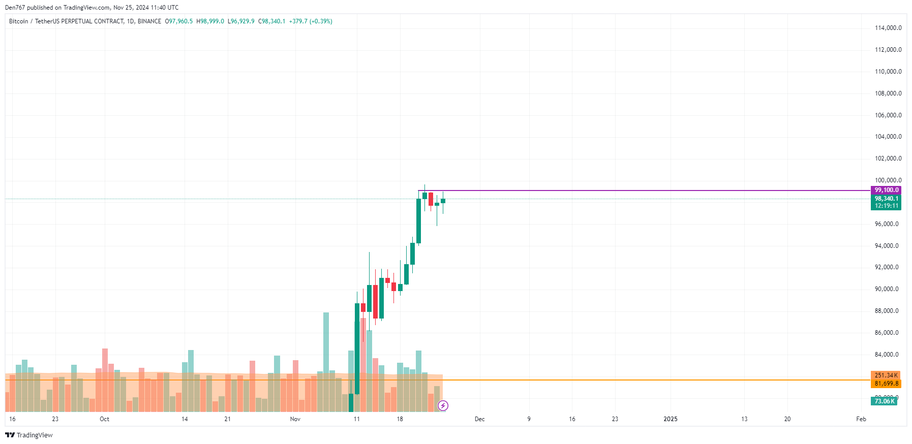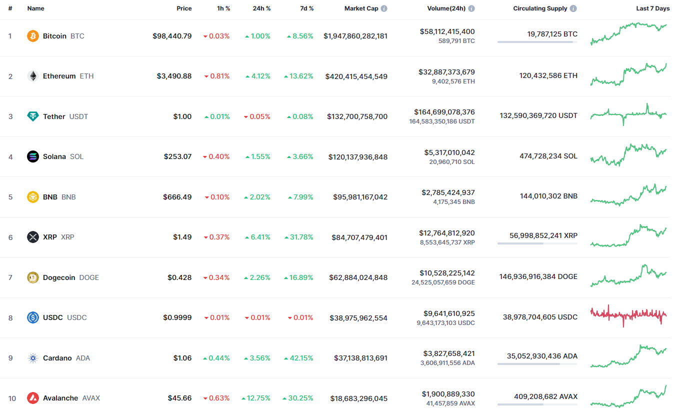 Bitcoin (BTC) is trading at $98,274 at press time.